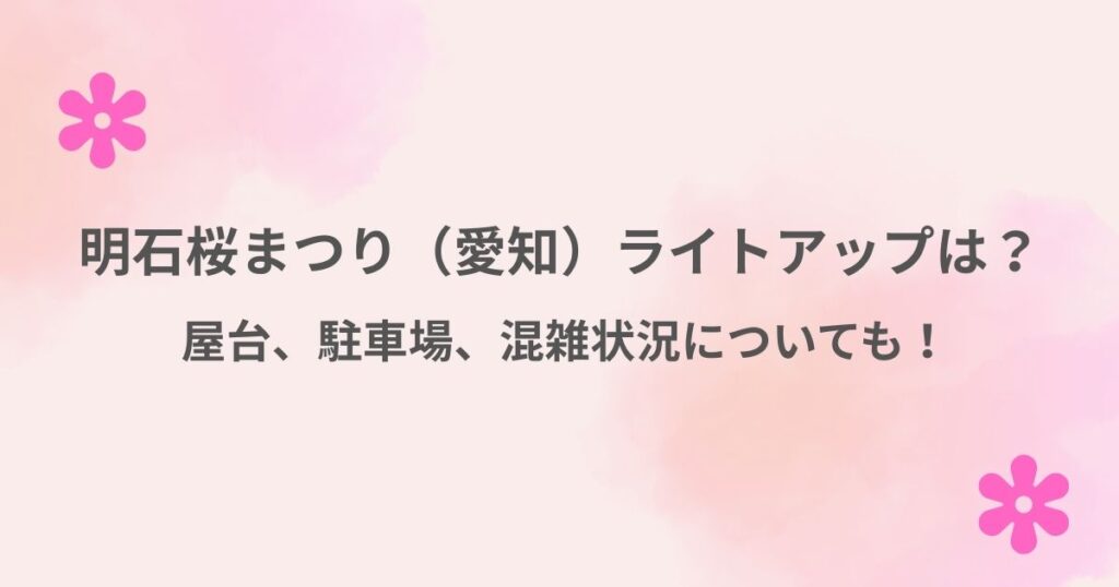 2026年の明石桜まつり(愛知・碧南市)について、ライトアップ・屋台・駐車場・混雑の4点をまとめました。