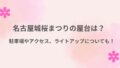 • 2025年のまつりでは、専用フォトスポットが設置され、フラッシュ撮影で桜が映り込む演出も行われました。2026年も同様の設置がある可能性があります。