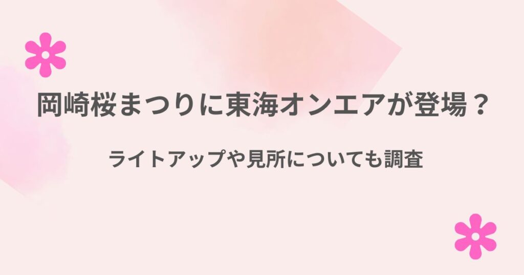 全体の日程と見どころもまとめます。岡崎の桜まつりは、ただ桜を見るだけではなく、夜景や川の景色まで楽しめるのが魅力です。昼と夜で雰囲気ががらっと変わるので、時間帯をずらして訪れるのもおすすめです。