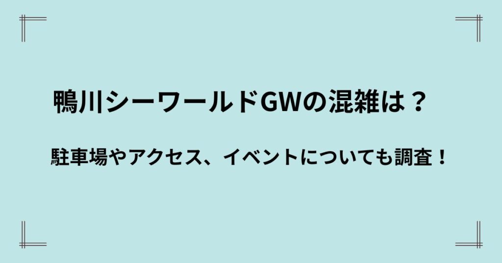 まとめると、GW2026の鴨川シーワールドは、5月3日〜5日が混雑ピーク、駐車場は早い時間から動く人が有利、ショー詳細は今後の公式発表待ち、という見方がいちばん自然です。